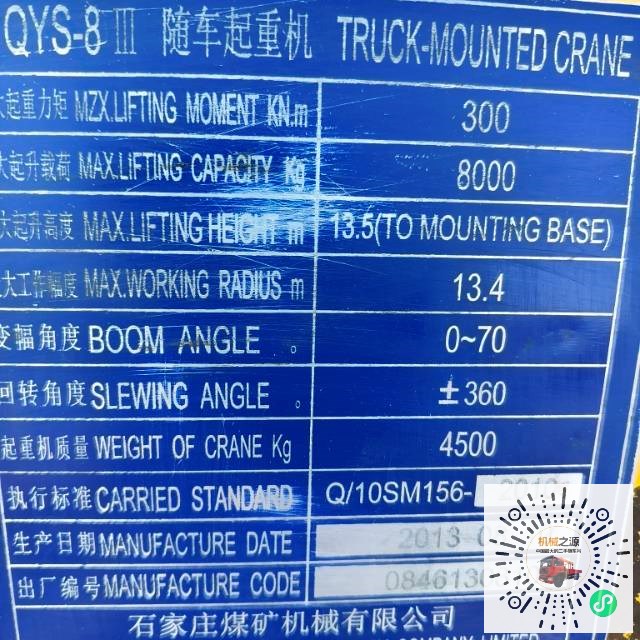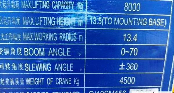 随车直臂吊 石煤 8吨